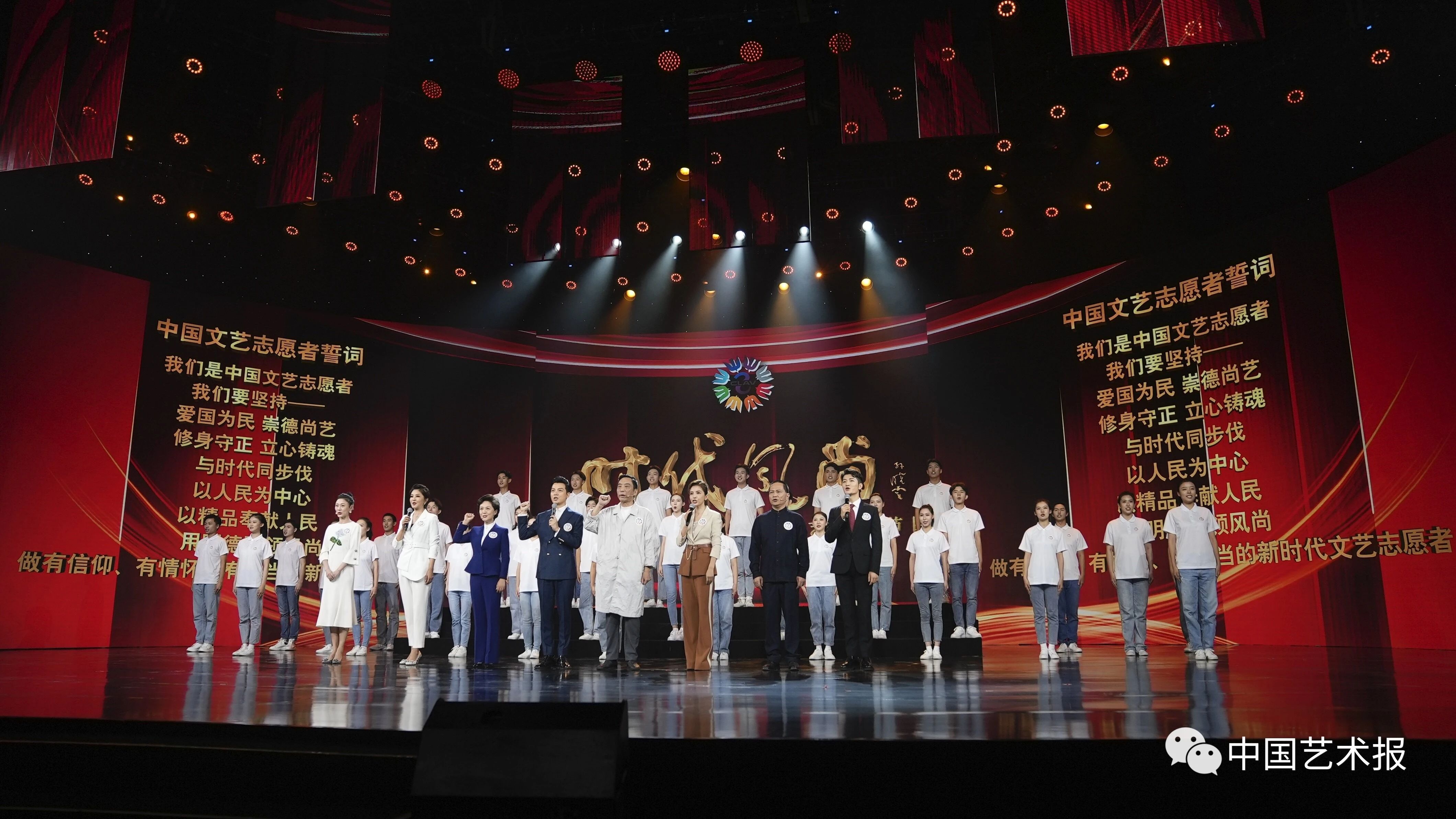 2021年10月15日,“时代风尚”——中国文艺志愿者崇德尚艺特别节目播出。图为文艺志愿者集体宣誓
